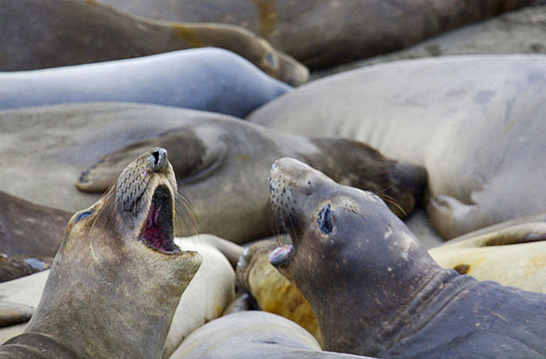 The elephant seals are highly sociable. Kind of like sailors coming in from the sea.  And what do sailors do? They sing!
