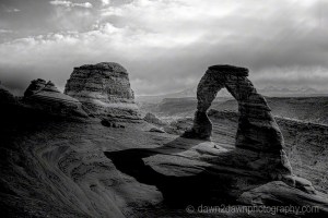 April 9, 2014 Delicate Arch Delicate Arch stands prominent during threatening skies at Arches National Park, Utah