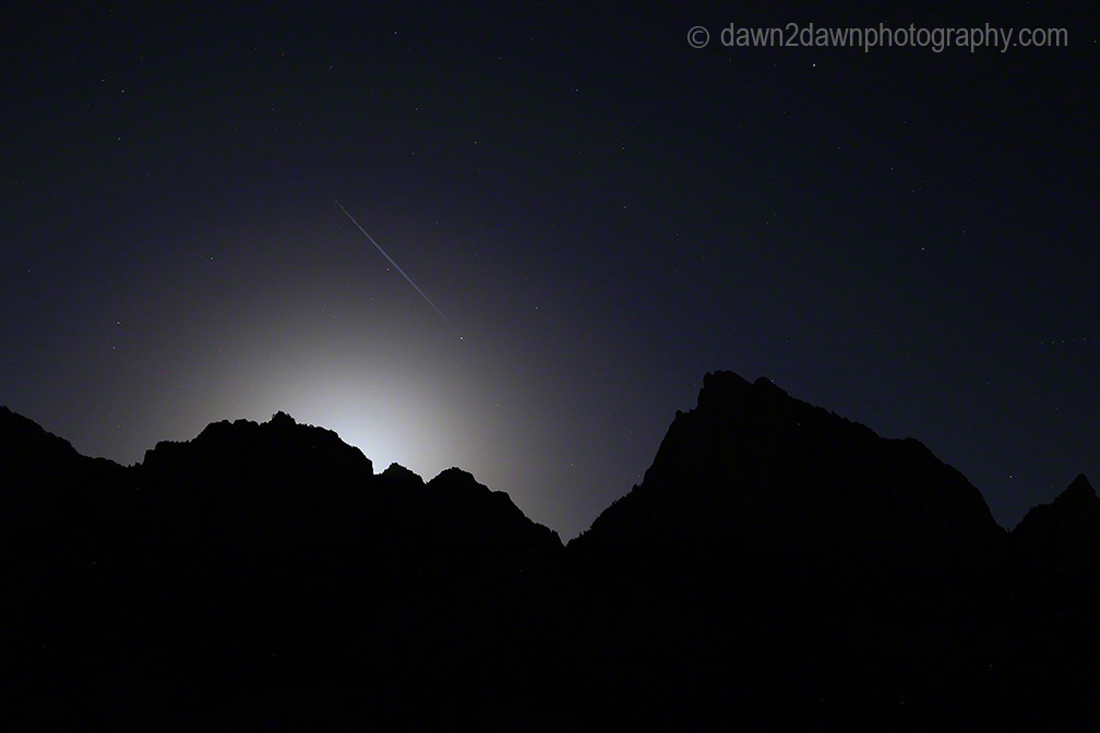 I don’t think these bison were impressed. Too busy getting fat!A jet aircraft decided to enter my airspaceThe moon illuminated this canyon wall at Zion National Park.Taken a few days earlier.