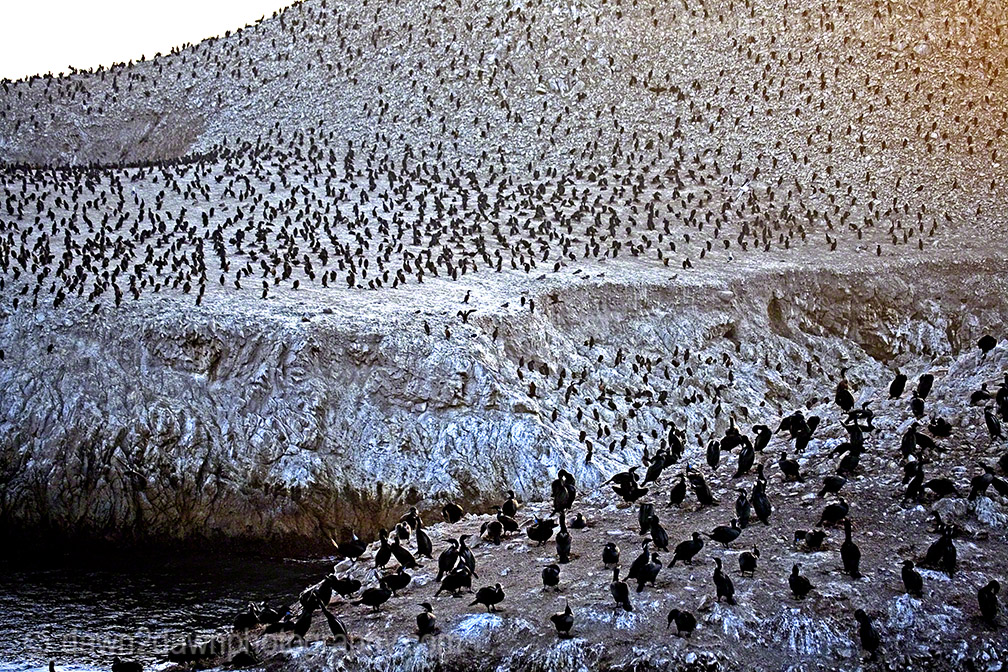 These Double-Crested Cormorants at Point Lobos, California can fly. But did you know that the Flightless Cormorants on the Galapagos Islands don’t fly. They have evolved so they don’t have to fly because there are no predators on the islands they inhabit. Of course, Darwin told us about this with his Theory of Evolution. The heart of Darwin’s controversial theory lies in the idea of natural selection. It states that variation exists in any animal population and within species. The same process of natural selection that applies to individual animals also applies to entire species. A species with numerous individuals well adapted to their environment will survive and prosper. So the Cormorants in the Galapagos don’t need to fly while these Cormorants in California do need to fly because of predators. Both species are excellent swimmers and divers with large web feet with fish being their main diet source.