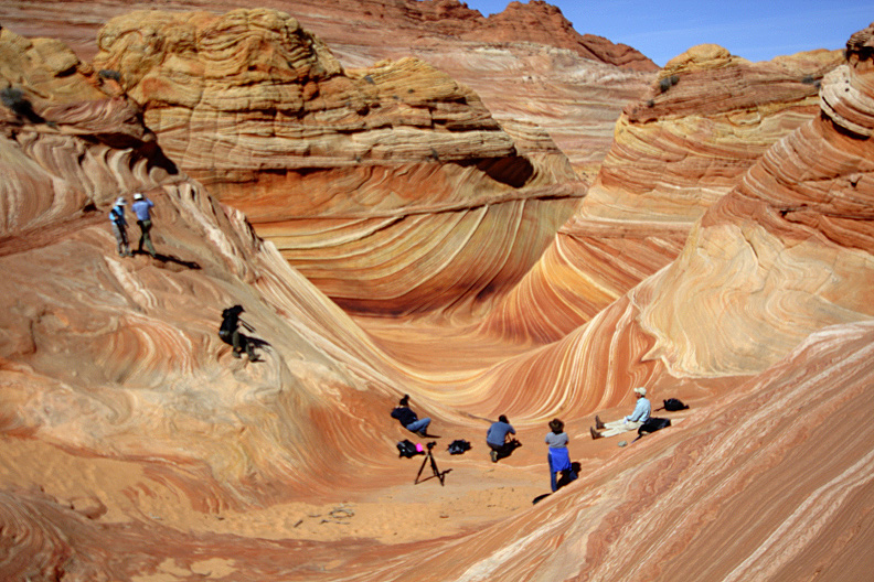 The online lottery process that chooses 10 fortunates per day may have up to 1,000 losers. Yes, I met 2 guys from North Carolina at The Wave who said they were 2 of 880 applicants for that one day. The in-person lottery has better odds but you have to show up in Kanab, Utah at the BLM office by 9:00 am sharp. There is more than one BLM office in Kanab. Hint, think Dave Thomas. There may be over 100 people clutching what they hope is one of 10 magic numbers for that days’ drawing which grants you access for the next day. I’ve seen the winners celebrate as if Publishers Clearing House had just shown up at their door. On one occasion, I was one of 10 hoping to get the final permit for the day and my heart had never beaten faster. I got the permit but kept my cool. I live about 50 miles from Kanab so I can go when I’m most likely to score a permit. I’m not going to give you too many particulars on when is the best time to try for the lottery. My heart can’t take it. But here’s what you’ll get. Images are available as downloadable files or prints by clicking on photo. Except the one of me.