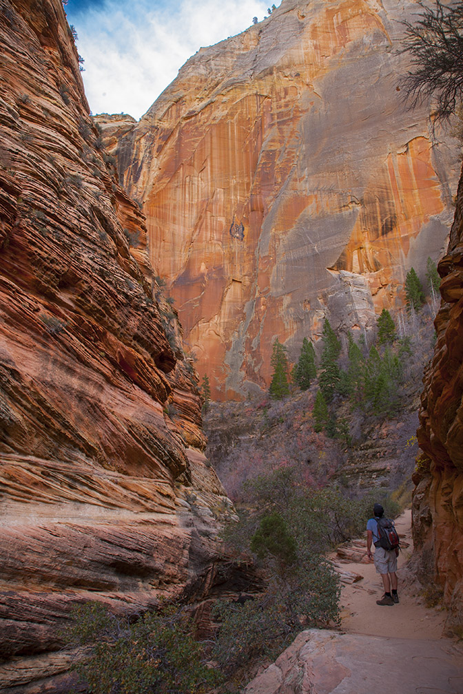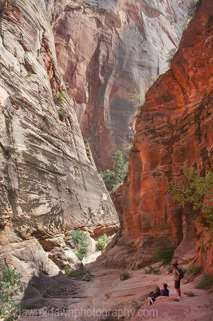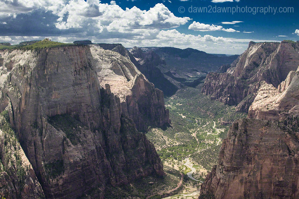 While Angel’s Landing and The Narrows’ hikes get all the pub and hype, the Observation Point Trail at Zion is a classic. You not only will receive a great workout, you’ll also capture some dramatic photos. It’s 4 miles up and of course 4 miles down. An elevation gain of over 2,100 feet will get your heart racing on the way up and put agonizing stress on your quads on the way down. At Observation Point, your are literally and figuratively looking down on those who climbed Angel’s Landing. There are a few places where you encounter huge exposure but there is plenty of room to negotiate the terrain safely. No safety chains on this trail! Autumn is the best time of year to conquer Observation Point as the 100 degree temps have left the area and the fall colors dominate the landscape at Zion. Below are images along the trail. You can purchase prints of these images at http://dawn2dawnphotography.com/ Click on the horizontal photos for a larger view.