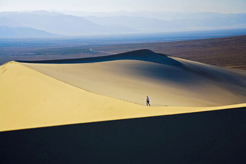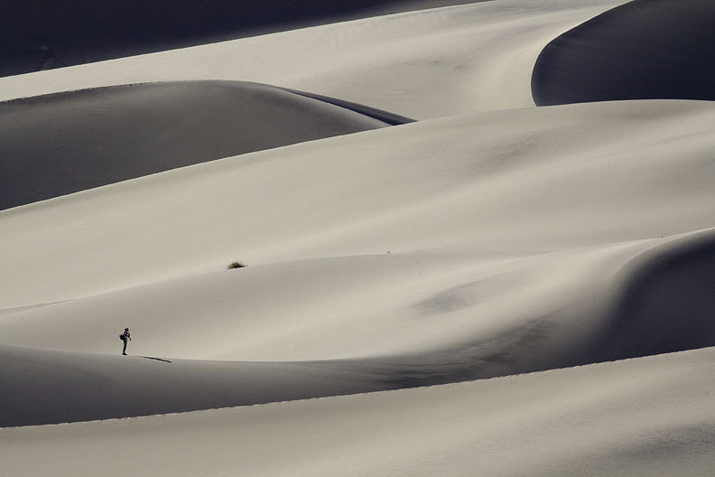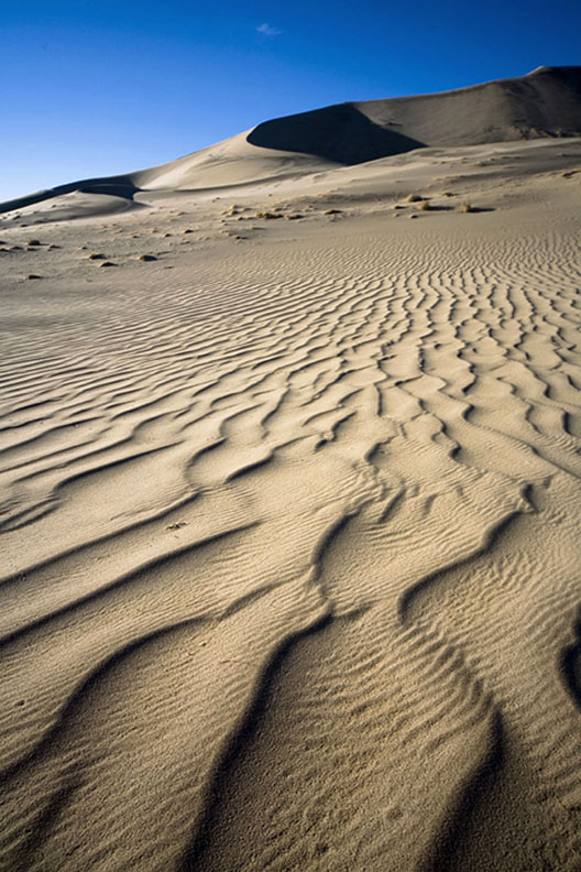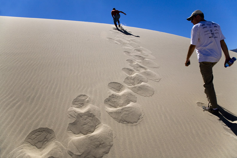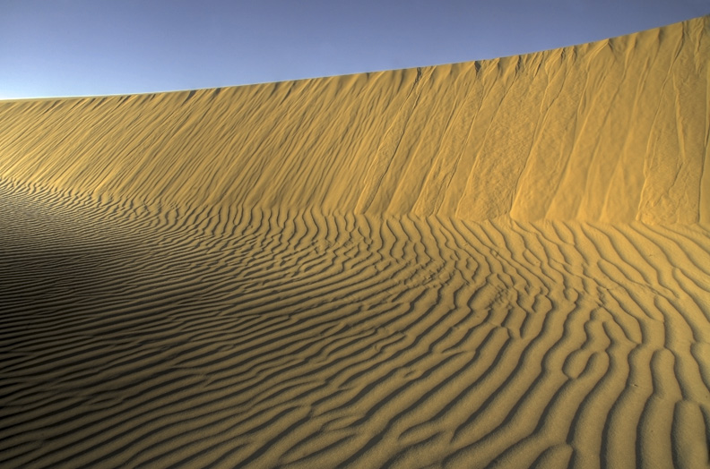 Death Valley National Park is huge. In fact, it’s the largest national park in the continental United States. The park contains many remote areas that are difficult to get to but well worth the effort. One such is Eureka Dunes in the northern section of the park. They reach some 700 feet into the California sky. You have to drive about 40 miles on a severely washboarded road to get there from the center of the park. Most visitors go to the Stove Pipe Wells Sand Dunes but bus loads of tourists leave their tracks in the sand there. I’ve been to Eureka Dunes numerous times and enjoy camping at the somewhat primitive campground. The dunes are at the foot of the aptly named Last Chance Mountains and the sands are forever shifting. Nature is amazing!