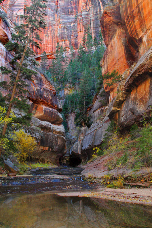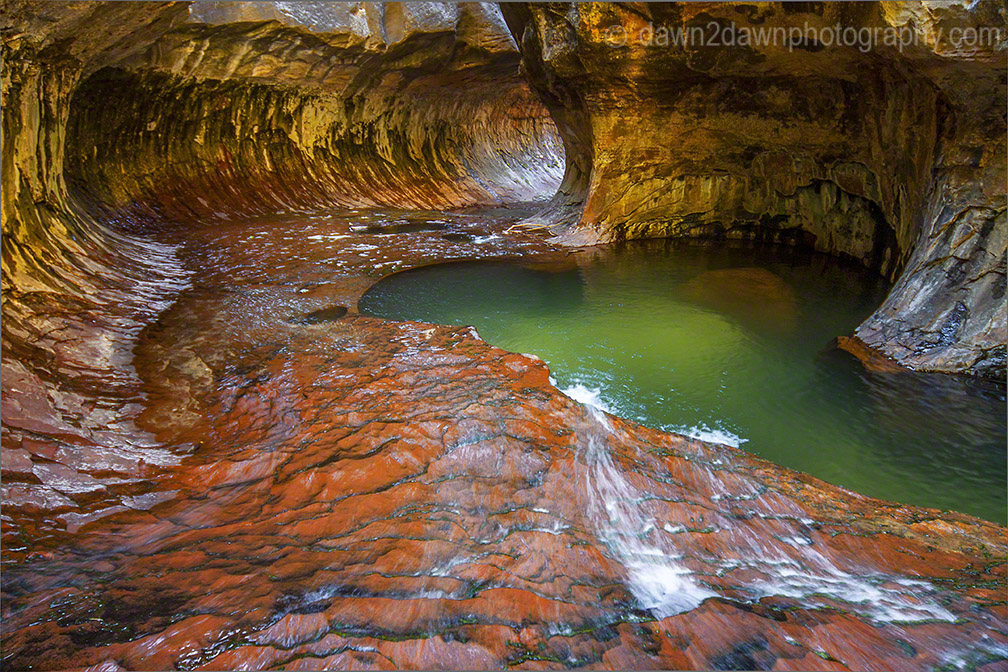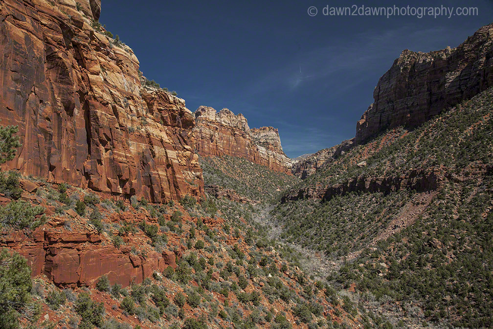 Zion National Park is a hiking park. The Narrows and Angel’s Landing are the two most popular but The Subway Hike is probably third. You do need a permit to do this hike but it is worth the effort. Here’s a link to the permit process Subway Permit Process There are two ways to hike The Subway, one from the top down which requires rappelling and from the bottom up. The following images are from the bottom up hike. This hike is about a 6 mile round trip and will take from 6 to 9 hours. The trail follows the left fork of North Creek. On a hot day, its great to strap on some water boots and slosh through the creek instead of hiking besides it.