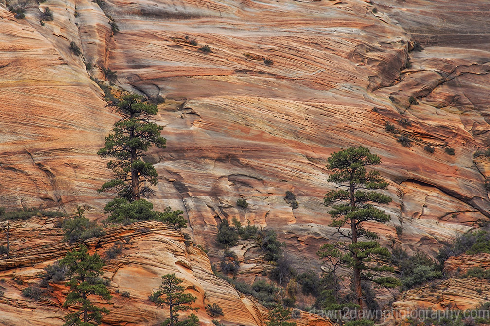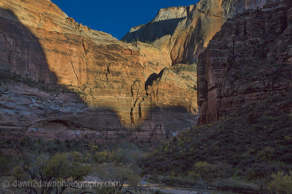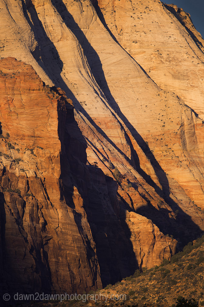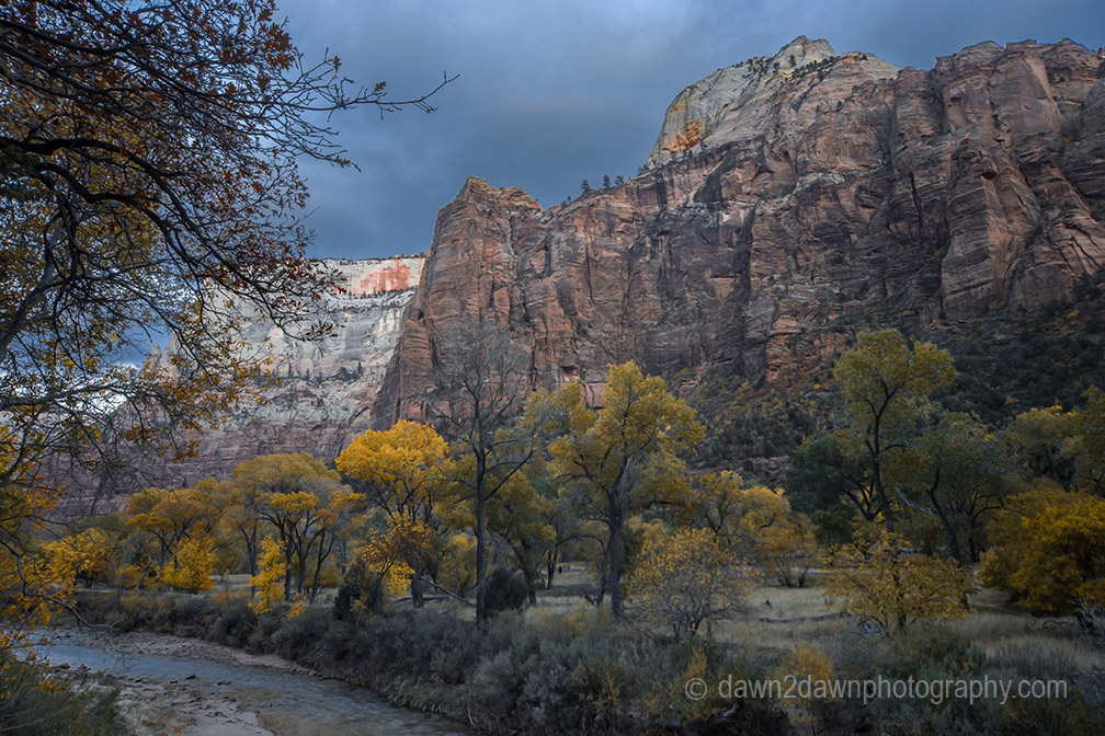 I was amazed by the brilliant falls colors at Zion last week, but I also noticed some hidden areas in Zion Canyon that I really never observed before. We all take photos of those wide open panoramas but if you take your telephoto lens and zoom in on specific targets, its amazing what you can capture. And a few pics are of familiar spots but from new vantage points in the park.