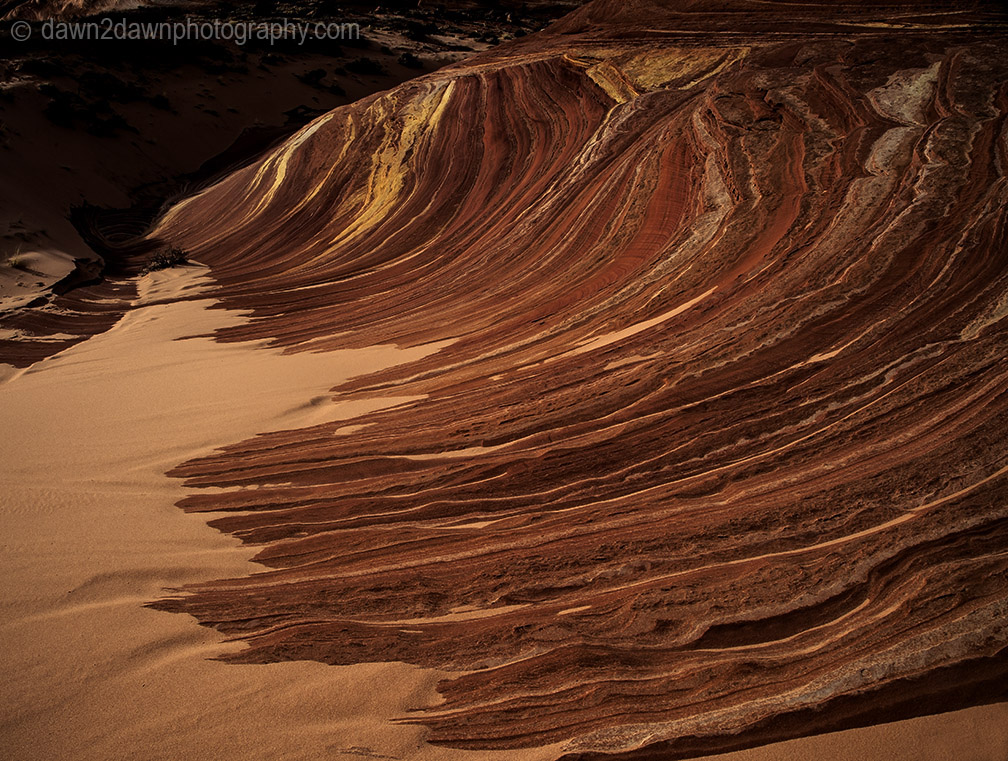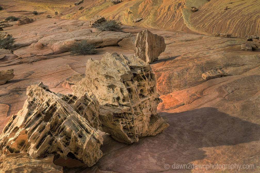 Most people who venture out to Coyote Buttes North head directly to The Wave. I decided to hold off on that until later in the day when few if anyone would be there and the late afternoon light would be right. So I veered to the right to Fatali’s Boneyard, a place I had not visited before. Fatali is a professional photographer, well known in these parts, who allegedly discovered this spot. Below are images from that spot that contain patterned sandstone etchings and withered rocks that resemble a skeleton or bones, hence the name. Next post will be images from the ethereal Sand Cove.