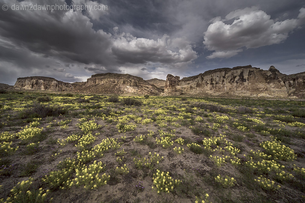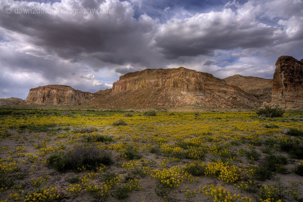 Springtime rains have spawned a carpet of yellow at Wahweap Creek near Big Water, Utah