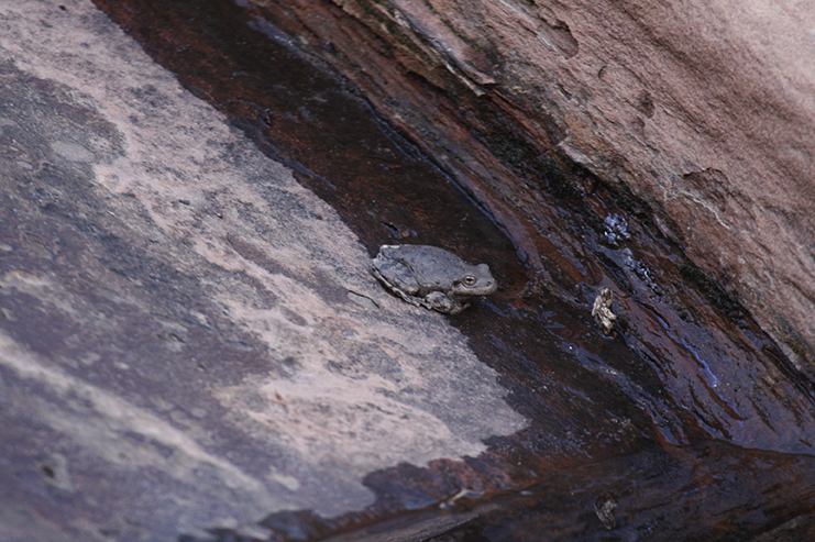 Yes, this frog, only 2 inches long, can really make some noise! And it’s not a single rivet. It’s a series of rivets that have a staccato-like delivery that resembles a machine gun sound or the sound of a woodpecker pecking. The male frog produces this sound to attract females during the spring breeding season. Frogs usually make the calls near bodies of water that are suitable for breeding and egg laying. The eggs hatch in about 2 weeks and metamorphose from tadpoles in 45-75 days. The video below, shot at Zion National Park, Utah, captures the sound as I was within a few feet of one loud one.