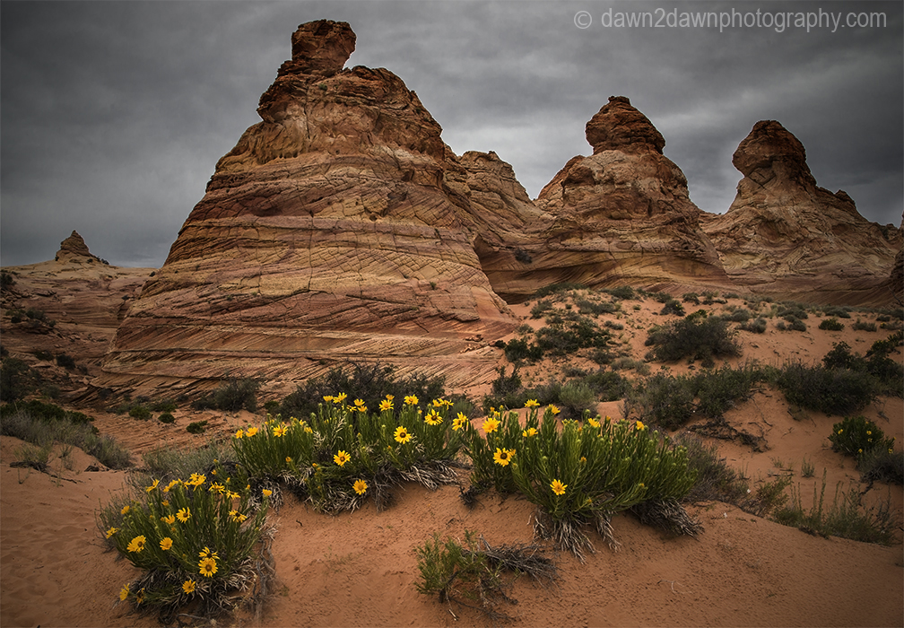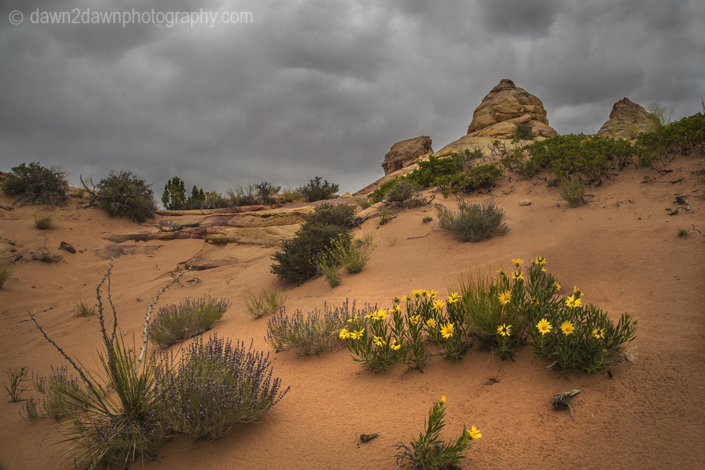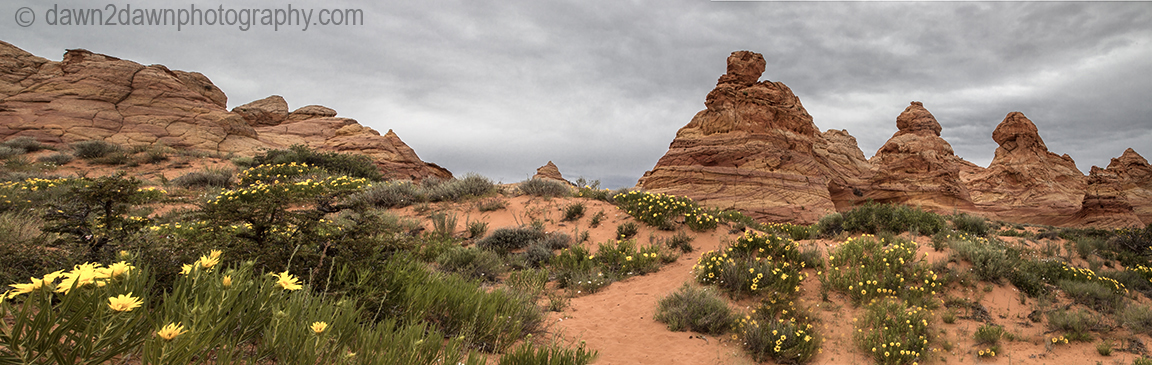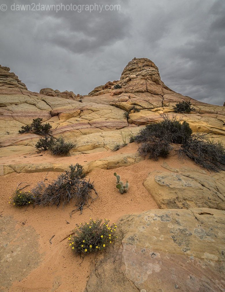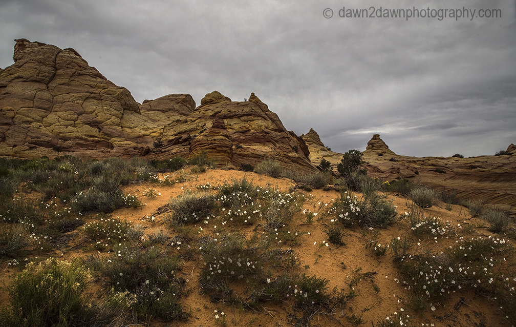 I’ve been out to South Coyote Buttes 5 or 6 times but never experienced the blooming desert wildflowers on display. We’ve had quite a bit of rain this spring and it shows, even in the desert. South Coyote Buttes is on the Arizona/Utah border and is about 2o miles from the nearest paved highway.