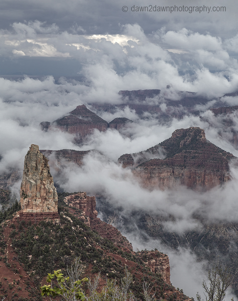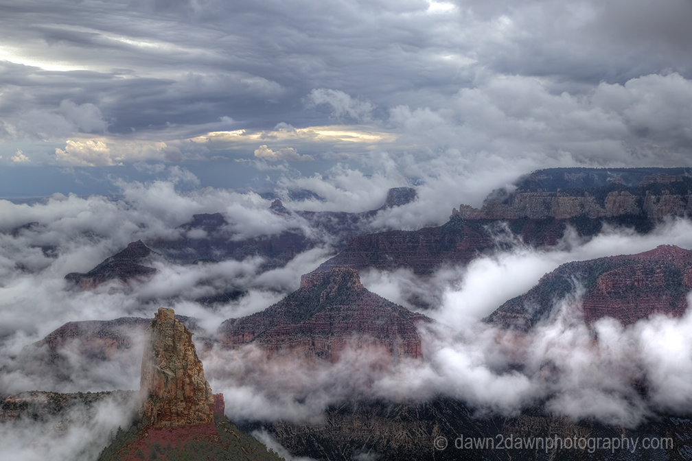 I awoke to a thunderstorm the other day, trapped in my tent, waiting for it to pass. But the storm presented an opportunity. The Grand Canyon could yield some promising images. And it did at Point Imperial. More pics from a fog-shrouded Grand Canyon to follow plus a time lapse video.