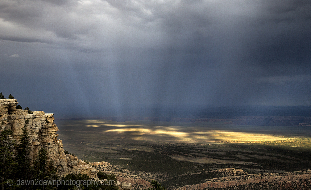 Shafts of light beam down onto the Northern Arizona landscape near the Grand Canyon