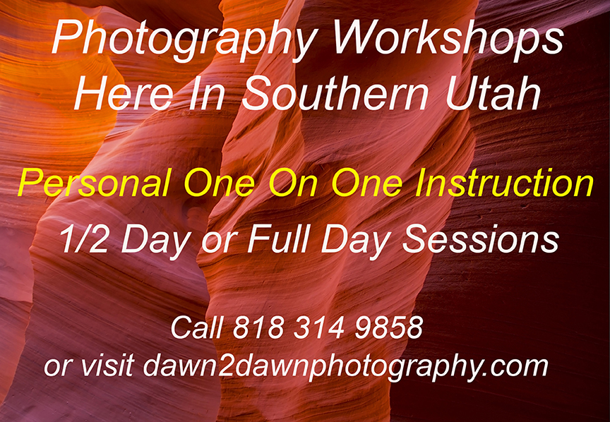 Today is the first day of autumn, a great time for photography, especially here in Southern Utah and Northern Arizona. I conduct personal one-on-one instruction and will get you to those spots to capture images such as below. Colors peak towards the end of October and into the first few weeks of November. Go to http://dawn2dawnphotography.com/ for details.