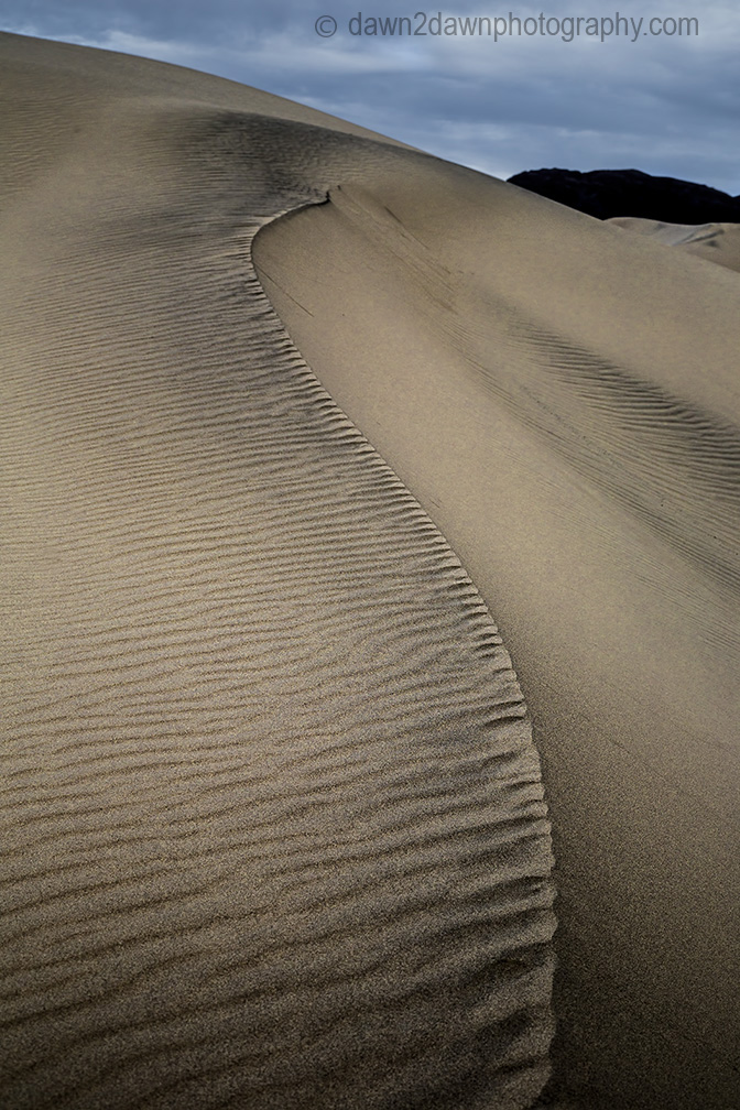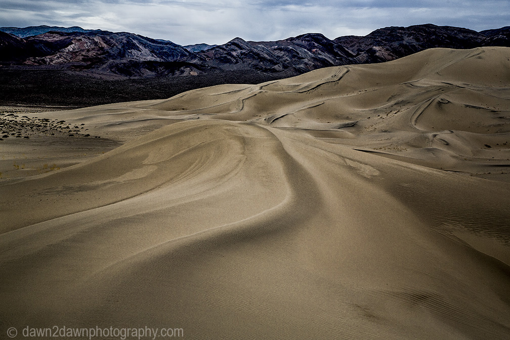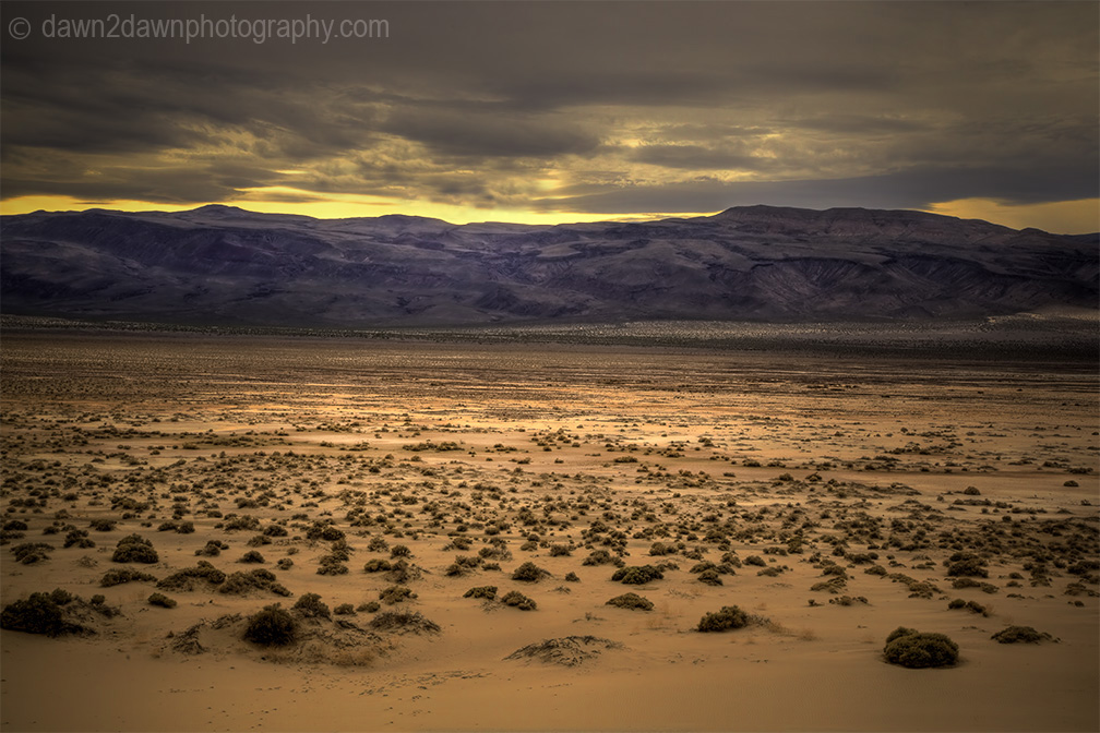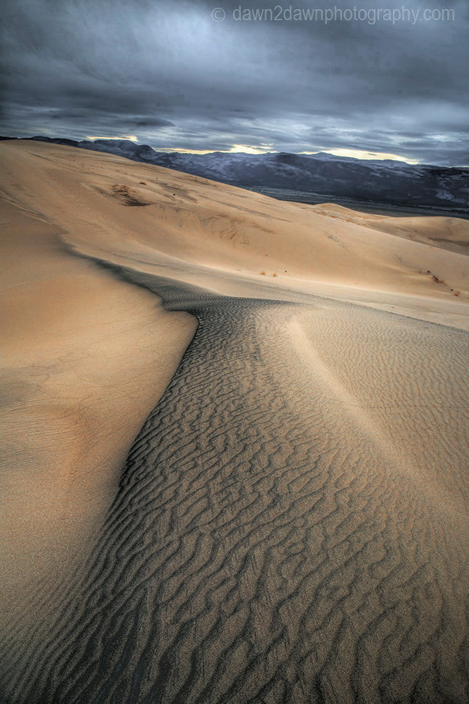 Storm clouds threaten Eureka Valley at sunset at Death Valley National Park, California