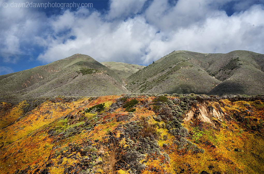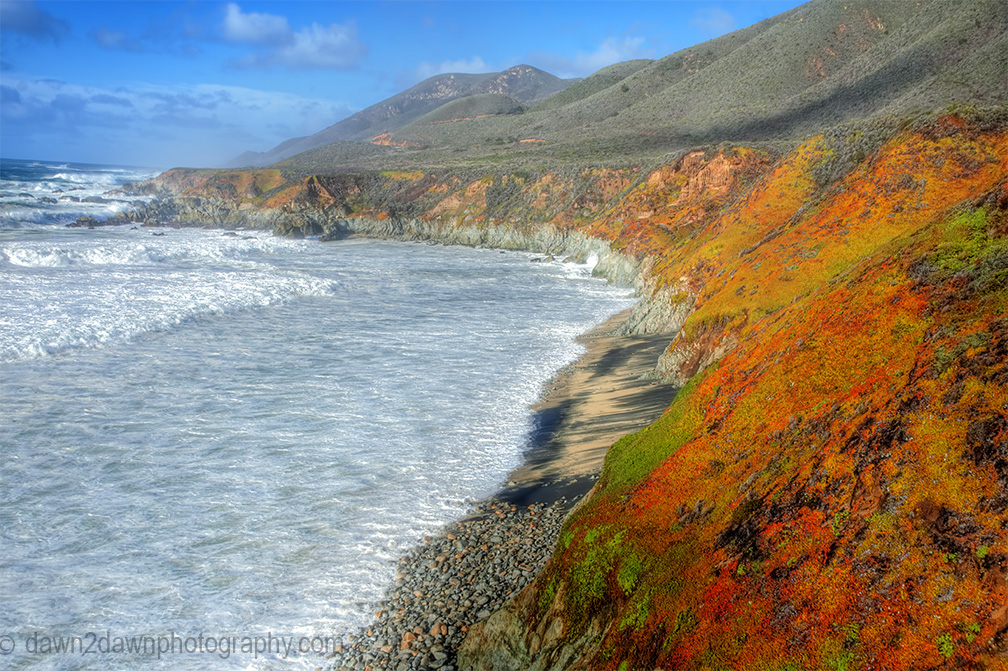 Great color contrasts across the landscape – the close up of the red tips is wonderful! I love the CA coast. ❤