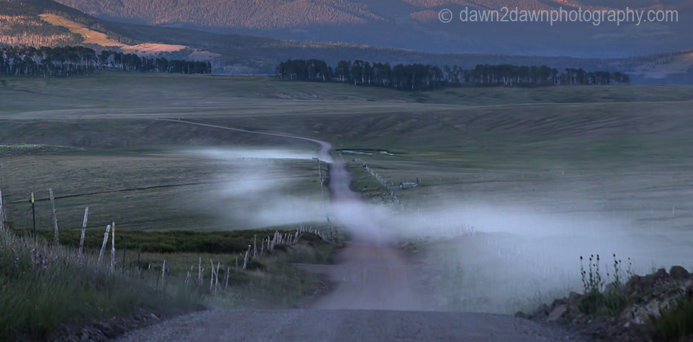 A passing vehicle (mine) produced clouds of dust during a hot dry summer day on a Kolob Terrace country road in Southern Utah.
