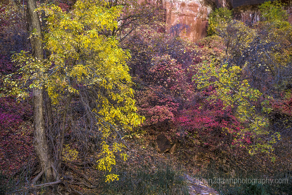 The fall colors invaded the main part of Zion National Park, at the 4,200 foot level.