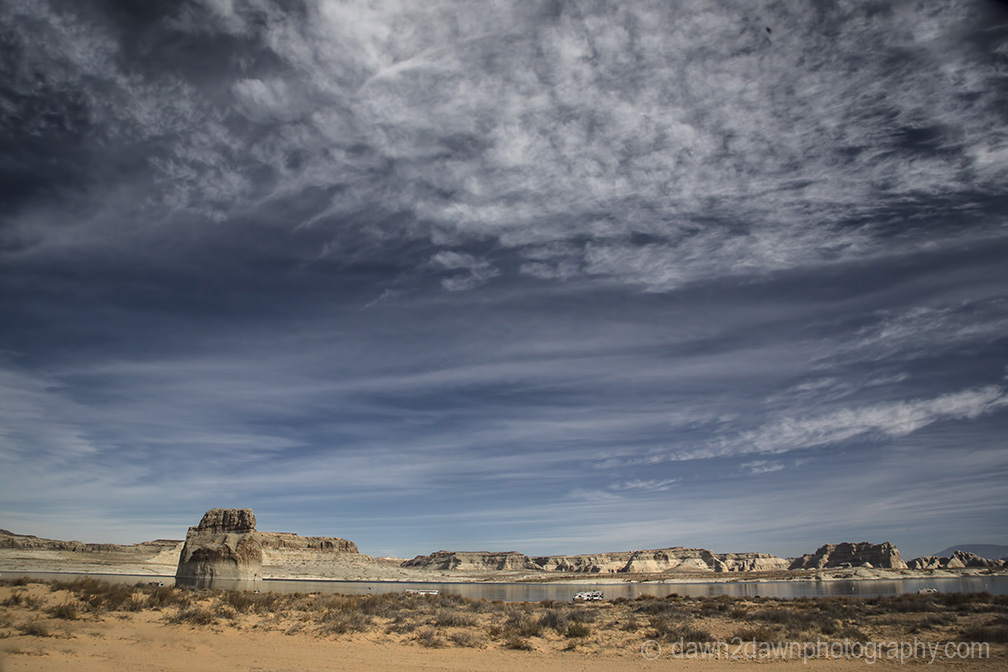 The skies above Lake Powell’s Lone Rock at Glen Canyon National Recreation Area, Arizona