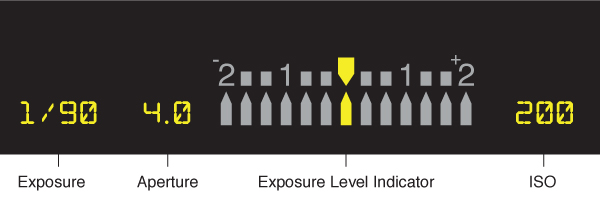 Setting one will affect the other settings. For instance, if you decrease your shutter speed, you will be letting more light to your sensor and thereby overexposing the shot. To correct for that, you can either adjust the ISO lower or the F-stop to a higher number which prevents less light to the sensor. If you reduce the shutter speed from 1/500 to 1/250, you will need to increase your F-stop by 1 stop from lets say F11 to F13. When looking into your viewfinder and partially pressing the exposure button, you will notice a grid at the bottom of your viewfinder with vertical lines and one bigger, solid one in the middle.(See image below) When you make adjustments with shutter speed and/or F-stop, your cursor at the bottom will move either left or right. What you want to do is to place your cursor right in the middle of the grid, at the zero mark. You may find like I do, that you prefer the cursor slightly left of center which produces a slightly less-exposed shot than what the in-camera sensor is telling you. When you decrease the shutter speed, the cursor will move to the right of zero but if you increase the F-stop number, the cursor will move back to the left. When the cursor is in the middle, it is time to release the shutter! Don’t forget to focus! Your camera may be slightly different but most work essentially the same.