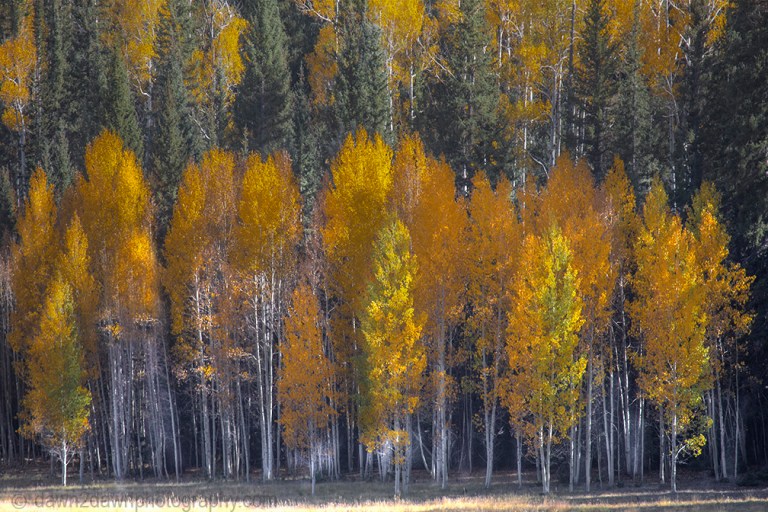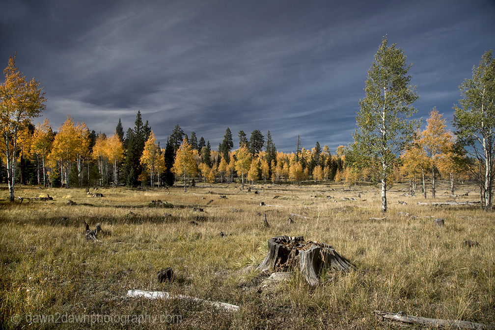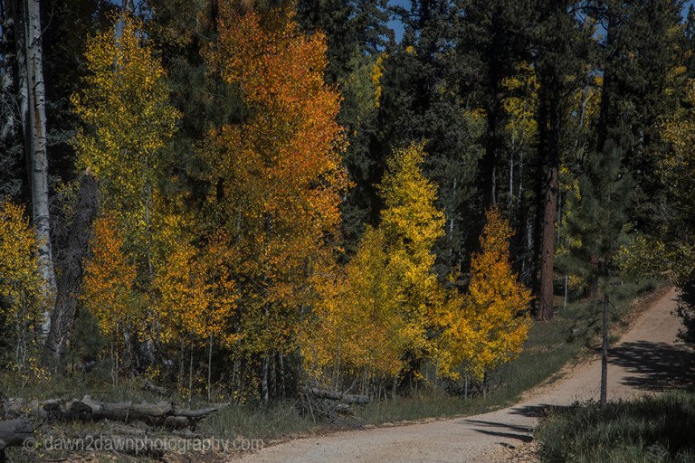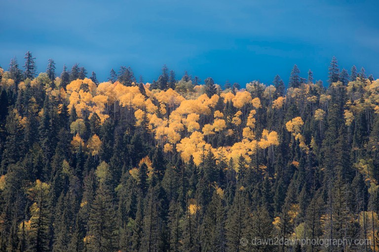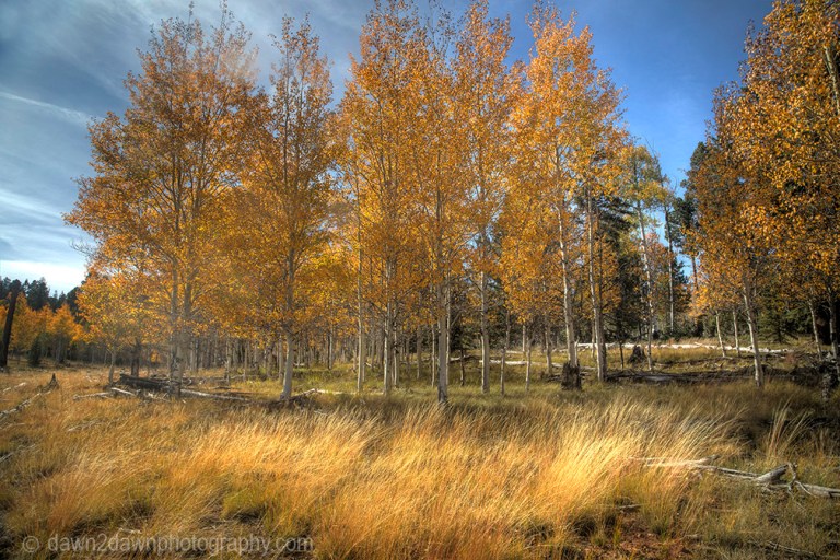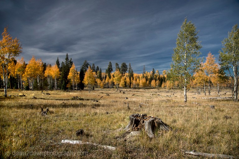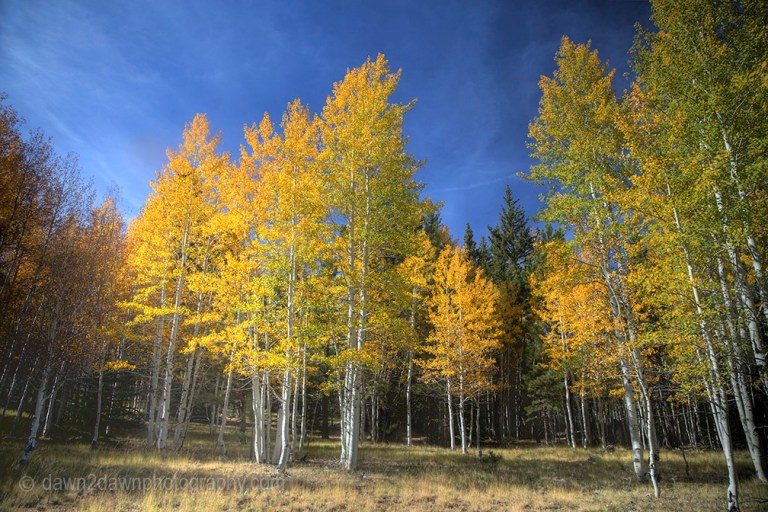 At the Kaibab National Forest near the North Rim of the Grand Canyon. The Quaking Aspens are the main producer of the colorfest. The foliage is near peak and I expect the color to last for a few more weeks although remnants from a hurricane coming in this week may have a negative affect.