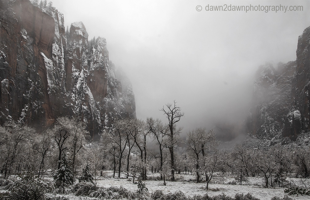 It doesn’t snow here often but is pretty when it does. Some parts of the park had rain only