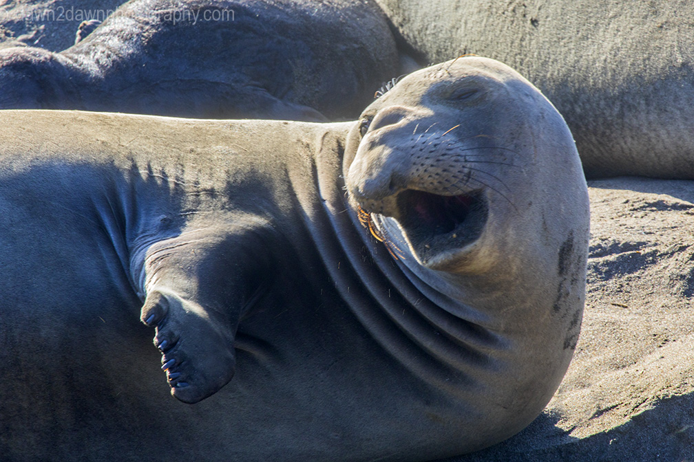 More commonly known as the Northern Elephant Seal. Elephant seals get their name from their huge size (Male’s can get up to 5,000 pounds) and from the male’s large proboscis, which is used in making extremely loud snorting noises during the mating season. A successful bull is able to impregnate up to 50 females in one season. I’m impressed. Click on link for seal sounds Seal Sounds Post