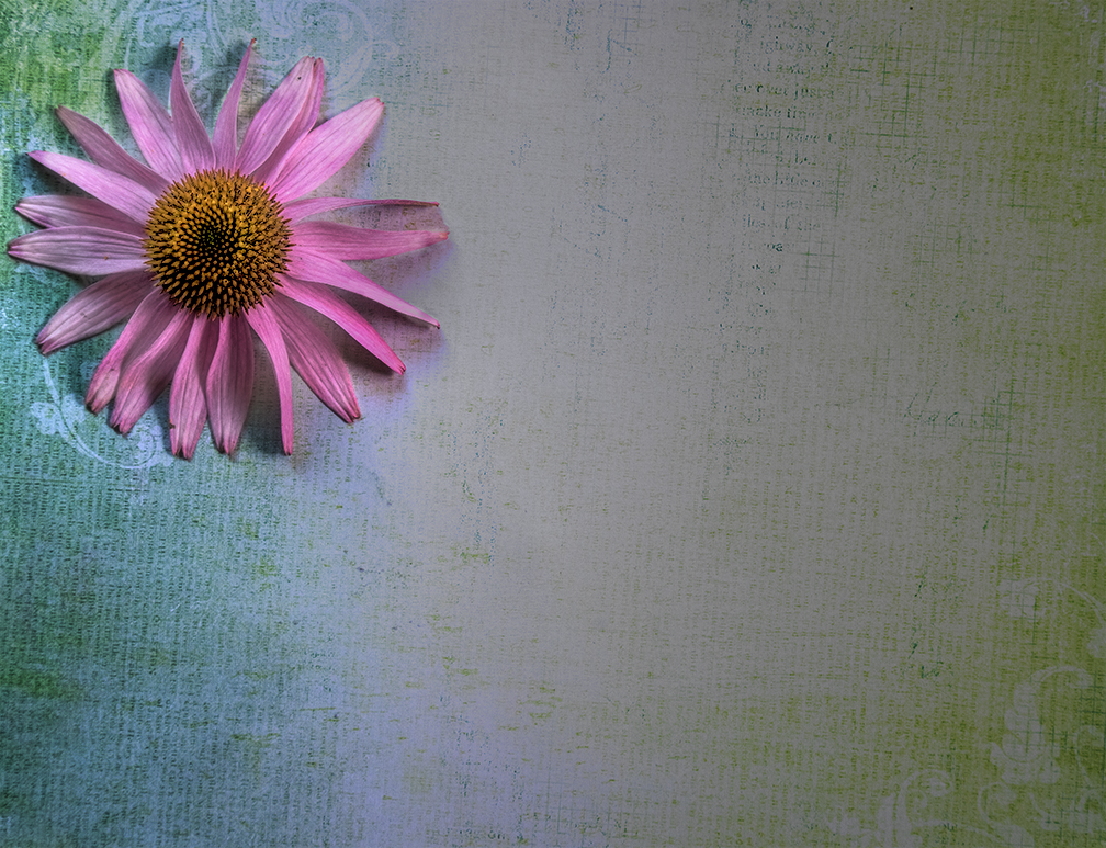 Lay Flat Photography Allows For Creativity And A Chance To Add Text. You Can Buy The Background Sheets At Any Arts And Craft Store And Shoot From Above Using Your Imagination For Subjects.Purple Coneflower lay flat on white natural wood background, copy ready, space for text