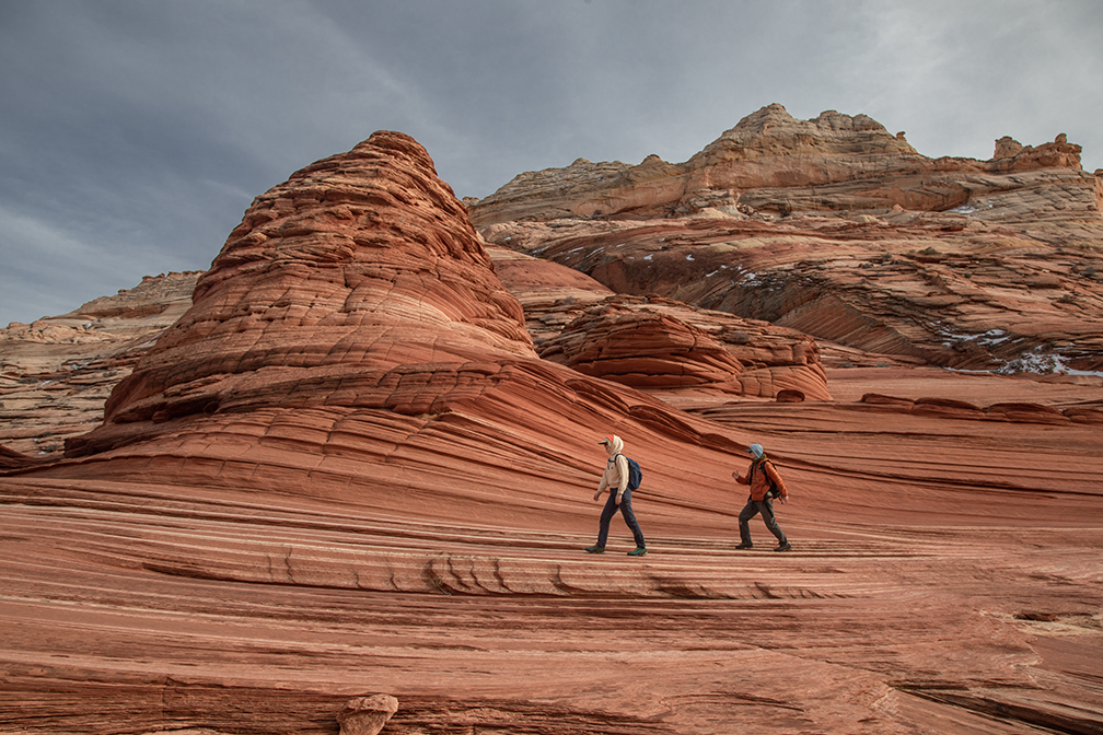 Unusual sandstone rock formations produced through erosion are the feature at The Wave at Coyote Buttes North in the Vermilion Cliffs National Monument, Arizona