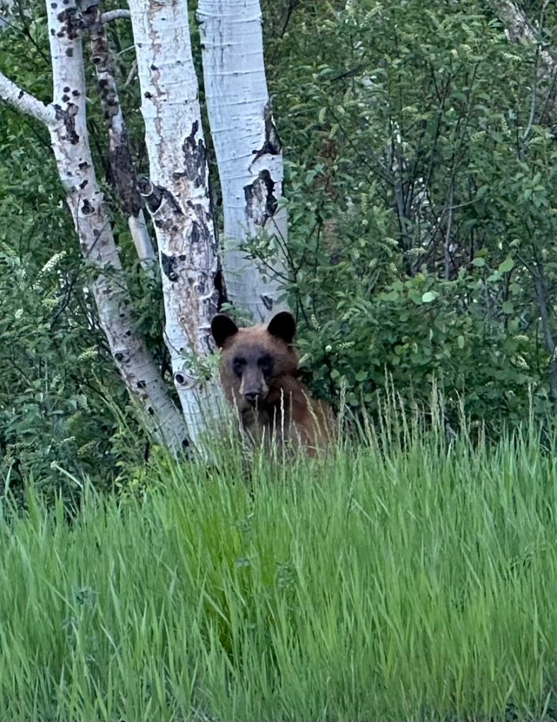 Bear ran in front of my car this morning on the way to work, tried to climb that Aspen, fell down, so I was able to get this shot. The bear kind of had a guilty look on his face. 😁
