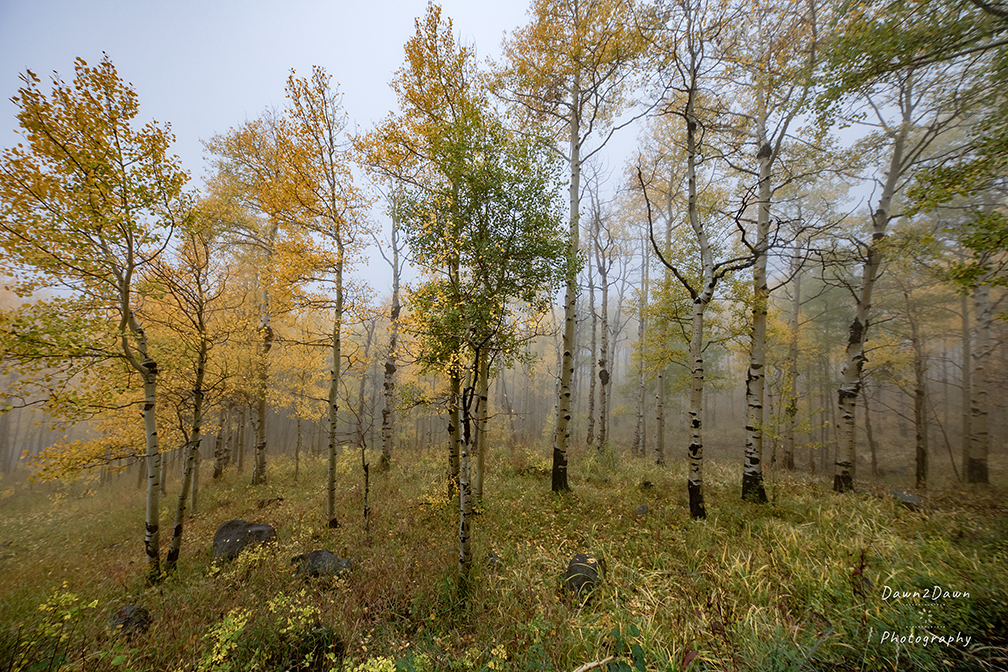 I almost stayed home because of the rain but remembered that rain and fog can produce some promising images. I ran into rain, snow and fog at Grand Mesa National Forest. Grand Mesa is the largest flat-top mountain in the world near Grand Junction.