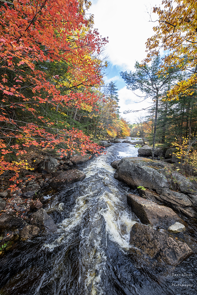 Fall colors have arrived along the North Branch River near Hillsboro, New Hampshire