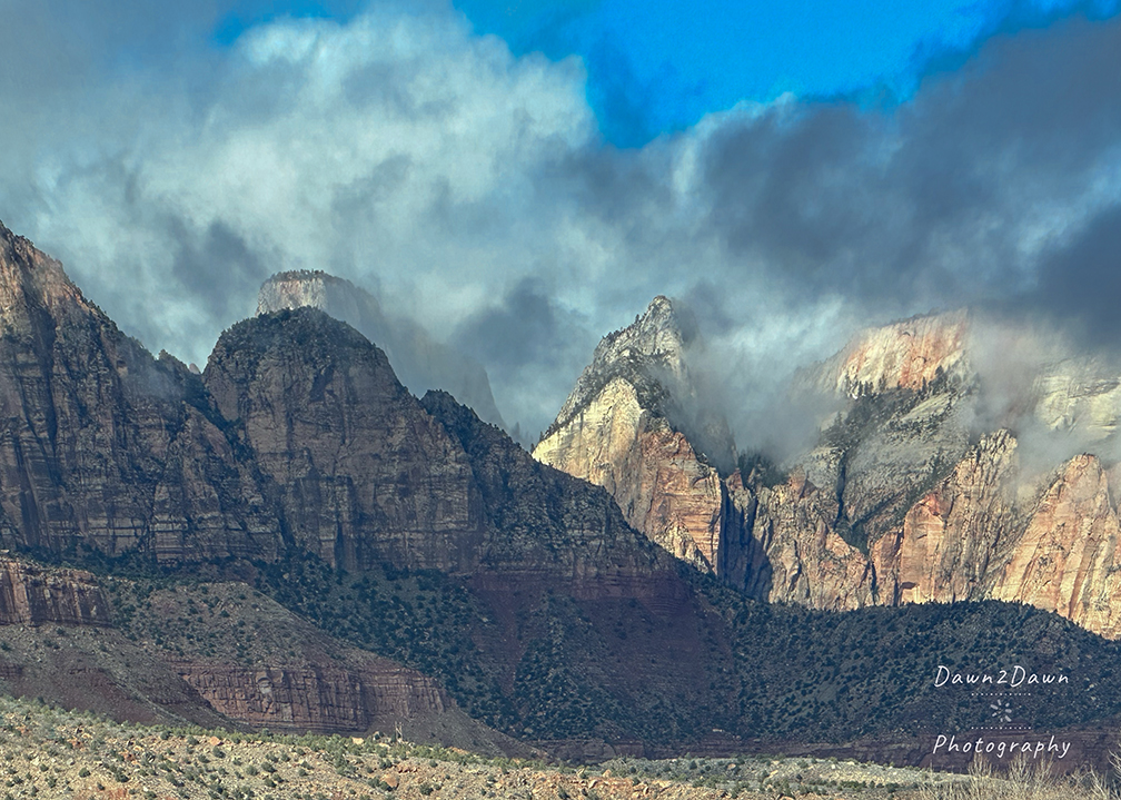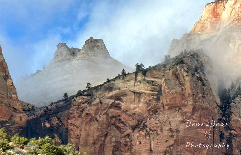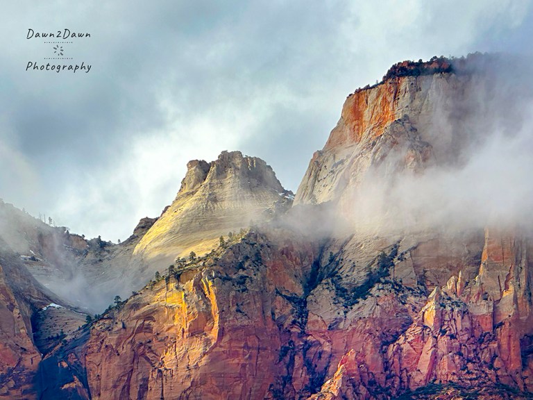 While driving through Zion NP the other day, rain clouds and fog persisted. Which always gives Zion a more ghostly and sublime look.