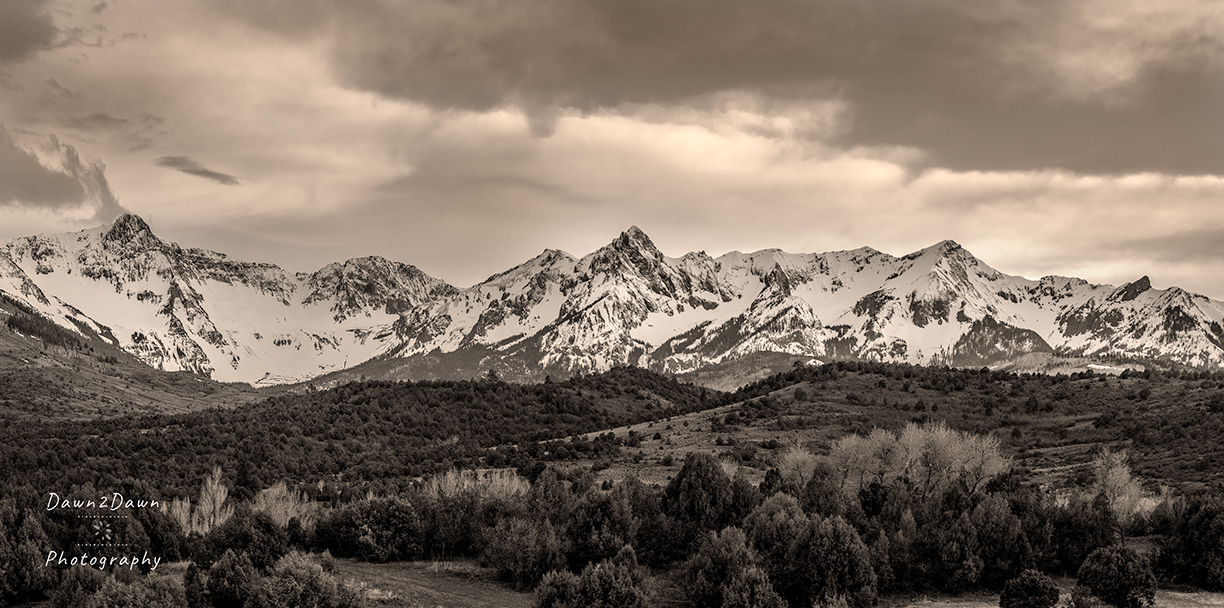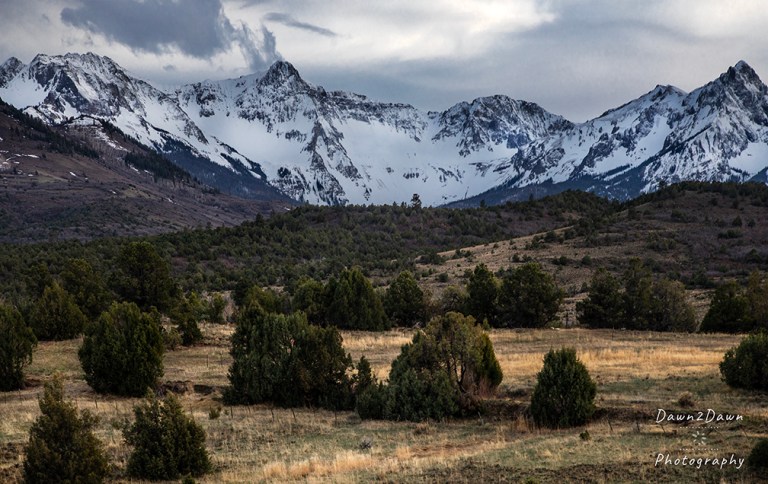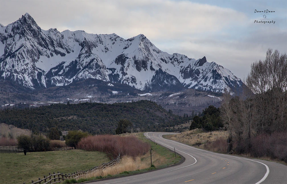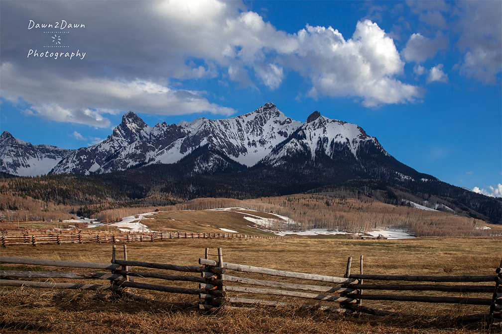 Near the town of Ridgway, the San Juan Mountains rise sharply into the Colorado skies. Signs of Spring are evolving as seen from Last Dollar Road and Highway 62, west of Ridgway.
