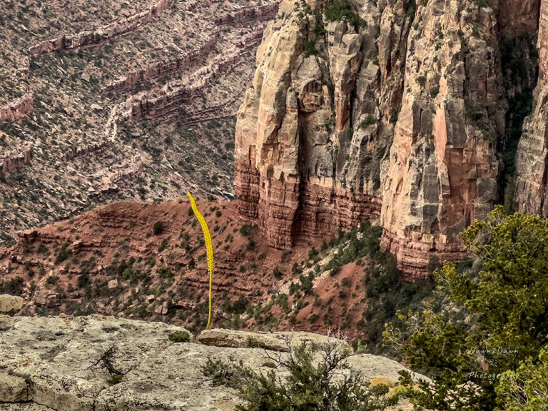 This succulent grows in the wild here at Grand Canyon National Park and what is unusual is that this agave is near its demise. This Utahensis Agave flowers once, and then it dies. At around 10 or 20 years old, it will produce a single and fast-growing 10-foot flower stalk just before it dies. All images produced by author.