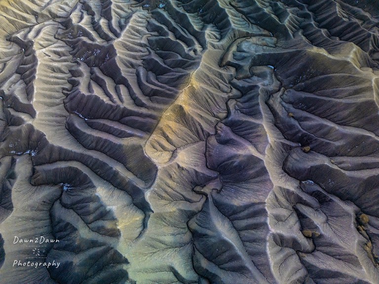 Shot from above, this landscape provides a series of images that defy description. From ground level, these badlands look rather pedestrian. Enjoy. These images can be purchased as prints or wall art at. Dawn2Dawn Photography