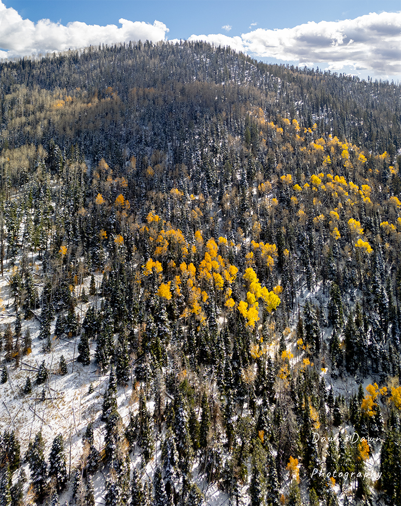 An aerial view of the fall colors produced by Aspen trees at Kolob Terrace adjacent to Zion National Park, Utah.